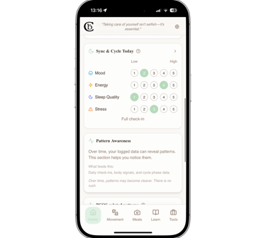 See how food choices relate to energy, cravings, and recovery over time.