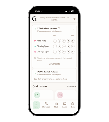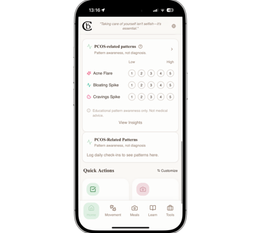 If you choose, the app can highlight patterns often associated with PCOS,